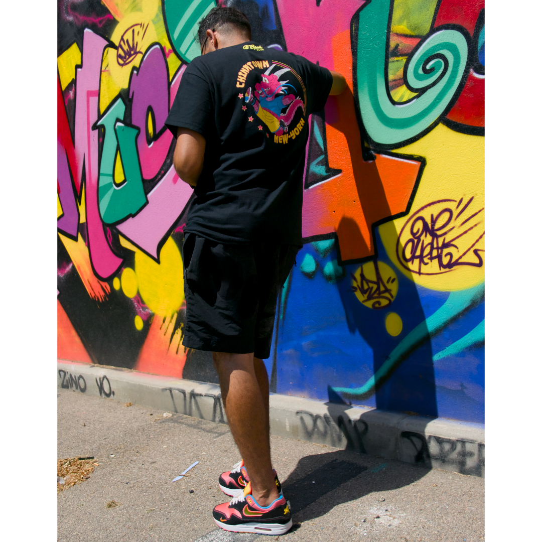 The T-shirt completes the look. It complements the shoes, it doesn't compete with them.